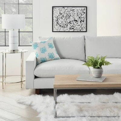Add coastal charm to your patio furniture with this reversible indoor/outdoor throw pillow from Mina Victory Home Accents. A repeat pattern of coral adorns its face in this artistic interpretation of underwater life. Handmade of polyester in turquoise blue and ivory, it reverses to a vibrantly scalloped drop pattern for double the design power. 18” square includes a poly-fill insert and zipper closure.