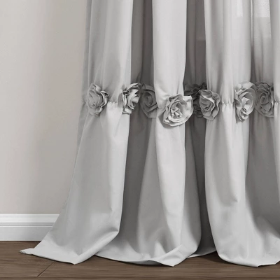 Give your windows a romantic, shabby chic look with this Darla Window Curtain featuring rows of hand-crafted flower embellishments. Pretty, elegant, and unique are all words that describe these window panels. This Darla Window Curtain will instantly brighten any room they’re in, from master bedrooms to nurseries. This Darla Window Curtain is unlined, meaning it will allow a good amount of natural light into your home. But your neighbors won’t be able to see inside. Our Darla Window Curtain is available in multiple color options, making it easy to fit the look into your existing decor theme. This curtain style is sold by the single panel. Each panel will measure 40 inches in width and 84 inches in length. Installation is easy with a three-inch rod pocket. It simply slides right onto your curtain rod. Or you can hang the panels from the rod with clip rings for a bit of added length. Because the floral embellishments are delicate, these panels are labeled dry clean only. Please do not machine wash or dry these curtains. Part of the Darla Collection.