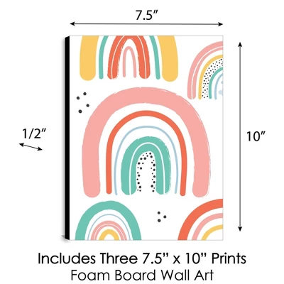 Hello Rainbow Wall Art Set INCLUDES 3 ready-to-hang Boho Rainbow themed panels and non-marking wall mounts for easy hanging. Hello Rainbow artwork is perfect for a nursery, kids’ room, or playroom. Hello Rainbow Wall Art & Kids Room Decor SIZE each 10 inches high x 7.5 inches wide x .5 inches thick. Robot lightweight art prints will arrive ready to use – no frame needed. The black edge gives each print a modern, finished look. EASY TO HANG: Simply attach a non-marking wall mount (included) to each corner of a Hello Rainbow art panel and press to hang in desired location. Wall mounts are repositionable, so you can redesign your artwork display at any time. PREMIUM HOME DECOR: 3-piece Hello Rainbow Wall Art Set is professionally printed on thick material with a black edge. You will not need to frame this set of Rainbow room decor. Each standout print is ready to hang and will add a contemporary touch to any room. MADE IN THE USA: Hello Rainbow Nursery Wall Art & Kids Room Decor is designed and manufactured at our Wisconsin facility using materials that are Made in the USA.