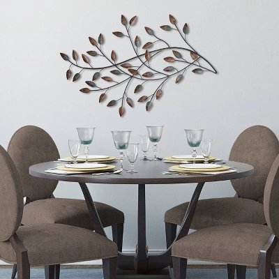 Add dimension to a plain wall in your home with the Blowing Leaves Wall Decor. Made from durable metal with a distressed blue and brown finish, this leaf decor is simple yet striking. Display it in a traditional-style home as a whimsical accent piece. Overall Measurement:32.00 W X 1.00 D X 20.00 H