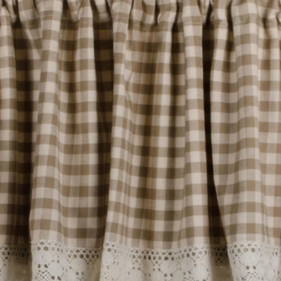 The primitive Heritage House Oat & Cream Valance by Home Collections by Raghu are absolutely beautiful in their simplicity! The uncomplicated yet popular oat and tan check provides a charming backdrop for any decor! So lovely on their own, or pair with coordinating window treatments for a more dramatic appeal!