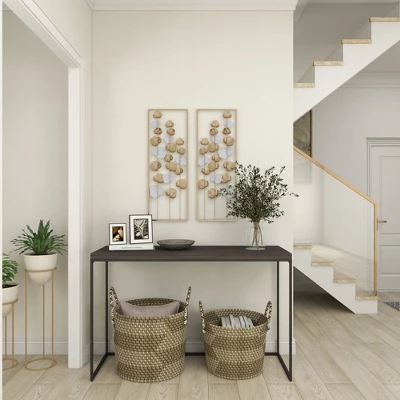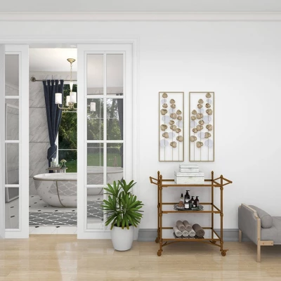 Create an excellent focal point on your walls paired with some cute accent tables, and level up your home with this amazing wall decor. Showcase your personality and turn your walls into an art gallery with this captivating wall décor. Hang this white and gold wall decor together as a set in your living room or hang the panels separately in different areas of your home. This item ships in 1 carton. Can be hung vertically using the sawtooths on the back; nails and screws not included. Suitable for indoor use only. This item ships fully assembled in one piece. This gold colored wall sculptures comes as a set of 2. Modern style.