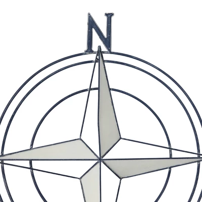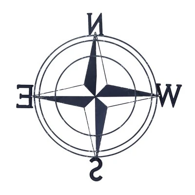 Bring a finishing touch to your walls with an inviting appeal with this beautifully crafted wall decor. It makes a great centerpiece over your sofa or console table, or in your dining room or bedroom. Add a unique detail to your homes with this compass metal decor that adds a nautical vibe to your walls. This item ships in 1 carton. Metal wall decor makes a great gift for any occasion. Can be hung vertically using the metal rings on the back; nails and screws not included. Suitable for indoor use only. This item ships fully assembled in one piece. This is a single dark blue colored wall sculptures. Nautical style.