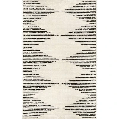 This striped area rug will be the finishing touch youve been looking! This floor covering can elevate your dining room or create a comforting environment on your patio. Made from durable synthetic fibers, this rug is built to last for years to come. Pair with nautical décor for a coastal feel, or farmhouse pieces for a rustic vibe. Kick back and relax with our pet-friendly and easy to care for area rugs.