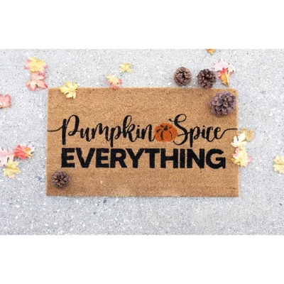 Update your fall décor with Shiraleah’s “Pumpkin Spice Everything” doormat. This charming doormat features a natural background with a screen printed pumpkin and screen printed text, “Pumpkin Spice Everything”, in a combination of block and cursive fonts. The contrast of the sharp block lettering with the curvature of the cursive font adds a charming yet sophisticated look to the “Pumpkin Spice Everything” doormat. Measuring 30” x 18”, and made from coir with vinyl backing, this doormat is the perfect way to add a little fall charm to your exterior.