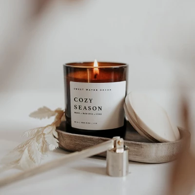 Our Cozy Season candle is a deep, inviting scent that transitions well throughout Fall and Winter. It will remind you of crisp evenings spent bundled up by the fire! With scent notes of woods, warm spice, and citrus, Cozy Season is perfect to enjoy during all of your favorite chilly months!