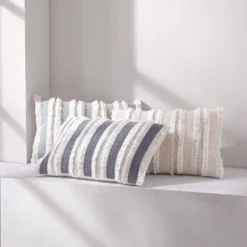 14X22 Inch Hand Woven Stripe Pillow Gray Cotton With Polyester Fill By Foreside Home & Garden